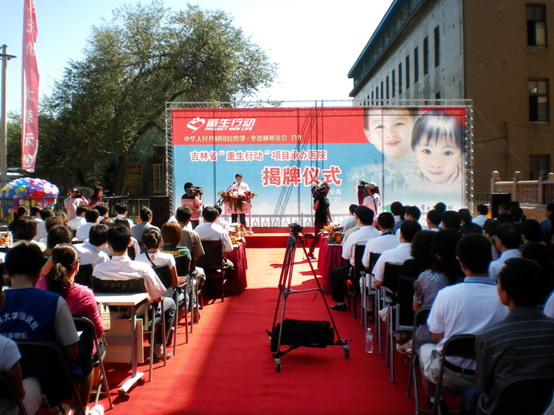8月22日上午,在新落成的吉大口腔医学院新医疗综合楼前,民政部社会福利和慈善事业促进司兼重生行动项目办公室主任、副司长张世峰,李嘉诚基金会代表、李嘉诚汕头大学发展基金会执行董事李玉光,吉大党委书记陈德文,长春市副市长郑文芝共同为吉林省“重生行动”项目承办医院揭牌,吉大口腔医学院成为“重生行动”在吉林省的惟一承办单位。